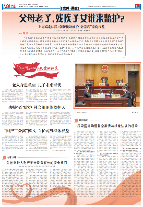 上海嘉定法院:创新机制维护“老养残”家庭权益